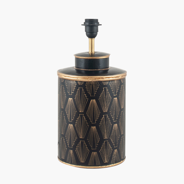 Using lacquered iron, weve crafted this beautiful base in antique black which works perfectly with the gold art deco style arch pattern. Classic shaping with on-trend styling harmonises to create a stunning lamp ideal for any space. Each piece in this collection is hand-made by a wonderful team of talented craftspeople in India. As you can see, each design features incredibly intricate illustrations, all of which are painted free-hand in a rich colour palette, creating a fascinating collection of awe-inspiring pieces. Style this lamp with one of our tapered or cylindrical shades to complete the look. Recommended lampshade size 35cm diameter.