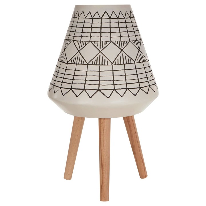The black lines stand out clearly against the planter's clean white background. Its trio of legs are crafted from renewable beechwood and have a light brown colour and rich grain pattern. Use it to accent interiors, a balcony, or the garden. materials: Wood, Synthetic composition:Metal, Wood Care & Use Instr: "Please note, this product composition contains natural wood, variations in colour may apply." Dishwasher Safe: N Electric Hob Safe: N Freezer Safe: N Gas Hob Safe: N Halogen Hob Safe: N Induction Hob Safe: N Materials: Wood, Synthetic Microwave Safe: N Oven Safe: N Product Depth: 44 Product Height: 71 Product Weight (kg): 6 Product Width: 44 Item Assembled: N