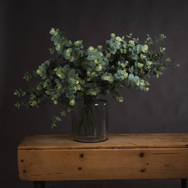This is the Eucalyptus Spray. A single stem of green faux variegated cineraria eucalyptus, chosen for its realism. This beautiful eucalyptus specimen can be used alone to set off almost any vase or as foliage within a mixed arrangement of blooms. Material: PLASTIC Colour: GREEN Delivery Size: Small Weight: 0.0470