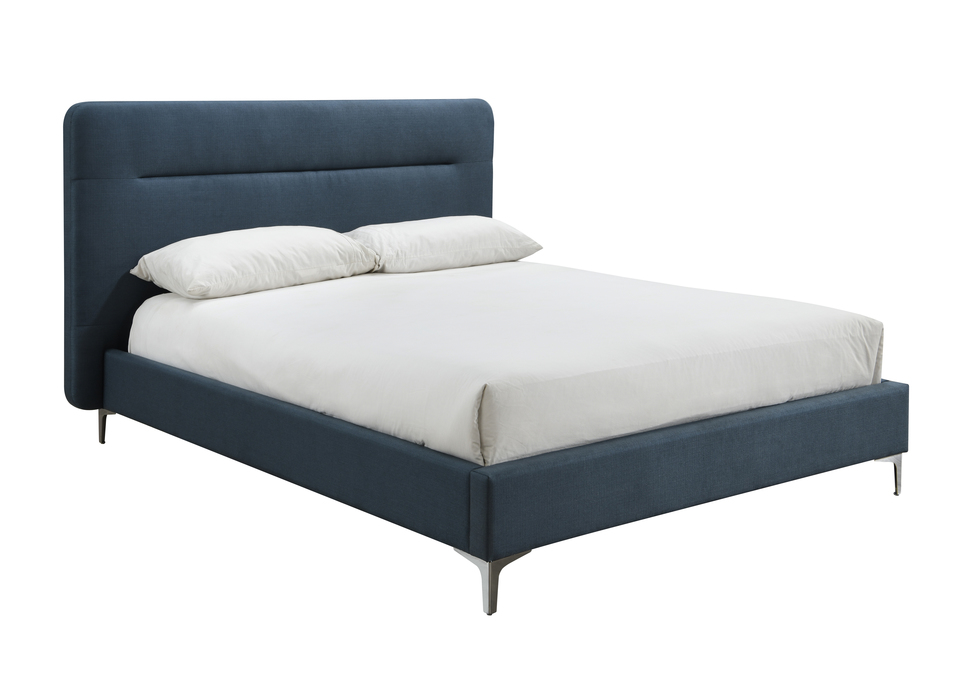 The Finn fabric bed is upholstered in a stunning steel blue & charcoal fabric and features an overhanging headboard.