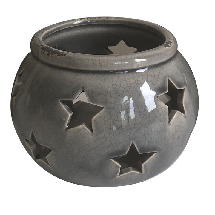 Showcasing a subtly distressed ceramic glaze with a sophisticated grey finish, this enchanting star lantern brings understated Nordic charm to any space. The intricate star pattern casts mesmerizing shadows when lit, creating an intimate atmosphere perfect for contemporary or rustic interiors. Pair beautifully with the coordinating Garda Grey Glazed vases and complement with natural elements like the Cineraria Eucalyptus Spray for a cohesive look. The lantern's versatile design harmonizes effortlessly with both minimalist and country-style décor schemes, while its generous proportions make it an impactful centerpiece for dining tables, console arrangements, or retail displays. The weathered finish adds character and depth, appealing to customers seeking authenticity in their home accessories
