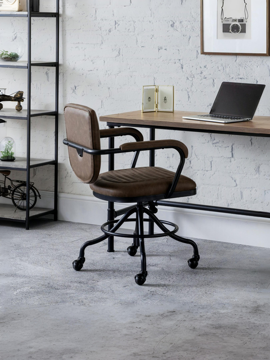 Materials: Faux Leather & Black Powder Coated Steel {• |||product feature 1}• Four prong base. Four prong base.. • Adjustable seat height. • Quilted back and seat. • 12 month product guarantee. Level of Assembly Required: Full Assembly Required Build Time: 0 $ Total Net Weight: 13 Cleaning Instructions: Wipe Clean with Dry Cloth