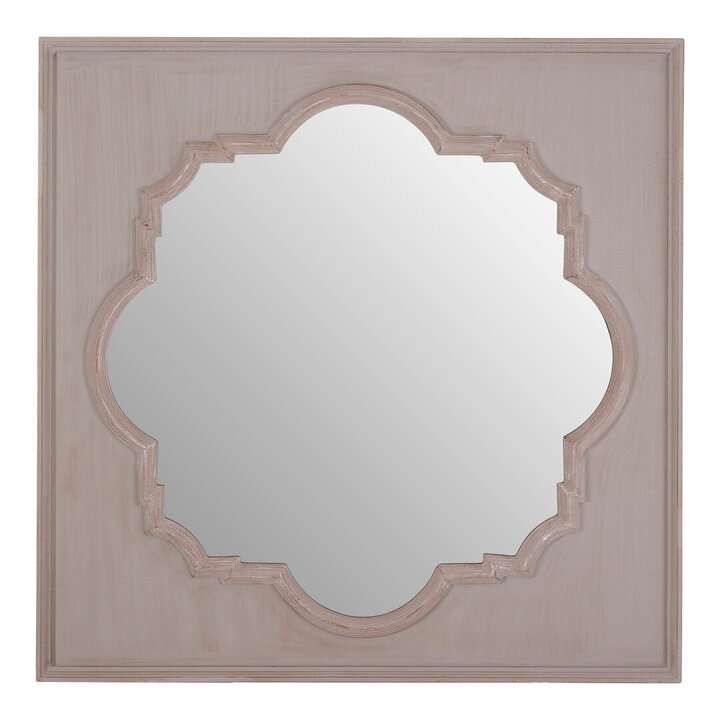 The Gladys wall mirror is formed out of natural wood, and has an antique taupe finish that complements muted colour schemes. Its outer frame is bevelled, while the flat inner section features subtle streaked graining on its smooth surface. An exotic quatrefoil shape is formed out of the inner framed section. materials: Wood, Glass composition:Wood 0%,Mirrored Glass 0% colour: Natural Care & Use Instr: "Please note, this product composition contains natural wood, variations in colour may apply." Dishwasher Safe: N Electric Hob Safe: N Freezer Safe: N Gas Hob Safe: N Halogen Hob Safe: N Induction Hob Safe: N Materials: Wood, Glass Microwave Safe: N Oven Safe: N Product Depth: 3 Product Height: 95 Product Weight (kg): 10.4 Product Width: 95 Item Assembled: Y Courier Service: BSTAR 1MAN