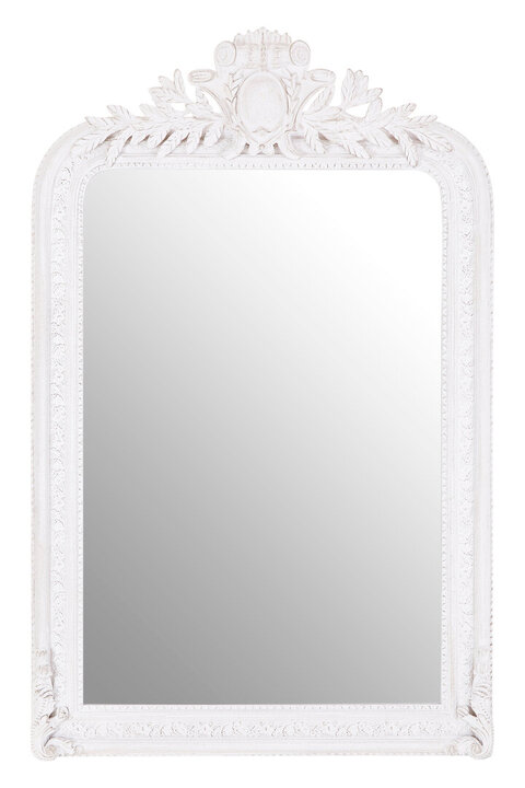 Its frame is finished in white, and benefits from a subtle weathering that helps to accentuate its decorative detailing. Intricate cornicing on its inner and outer sections forms a border for its elaborate floral motifs, while flourishing foliage at the top adds some drama. materials: Glass, Wood, Natural composition:Wood 0%,Mirrored Glass 0%,Resin 0% colour: Grey Care & Use Instr: "Please note, this product composition contains natural wood, variations in colour may apply." Dishwasher Safe: N Electric Hob Safe: N Freezer Safe: N Gas Hob Safe: N Halogen Hob Safe: N Induction Hob Safe: N Materials: Glass, Wood, Natural Microwave Safe: N Oven Safe: N Product Depth: 9.5 Product Height: 125 Product Weight (kg): 9.3 Product Width: 80 Item Assembled: Y Courier Service: BSTAR 1MAN