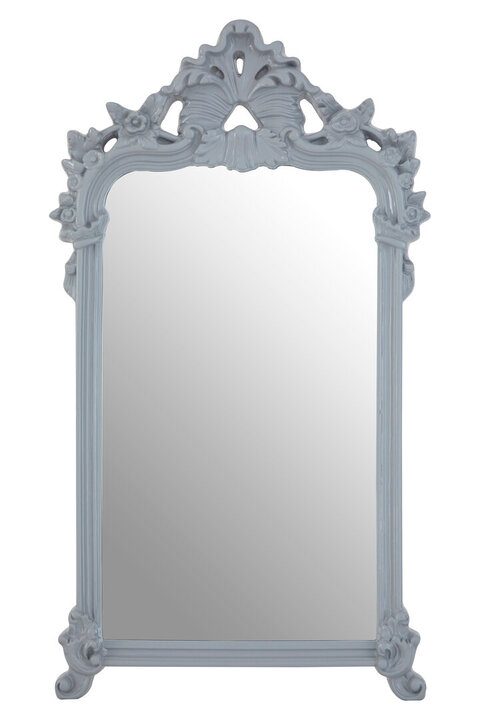 Its light grey colour makes this wall mirror suited to coordinating with pale wood furniture. The frame has a rectangular design, with rounded shoulders that are garlanded by flowing leaf and flower motifs. materials: Wood, Glass, Synthetic composition:MDF 10%,Polyurethane 50%,Glass 40% colour: Grey Care & Use Instr: Wipe clean with a soft cloth. Do not use abrasive cleaners Dishwasher Safe: N Electric Hob Safe: N Freezer Safe: N Gas Hob Safe: N Halogen Hob Safe: N Induction Hob Safe: N Materials: Wood, Glass, Synthetic Microwave Safe: N Oven Safe: N Product Depth: 6 Product Height: 122 Product Weight (kg): 7 Product Width: 70 Can Mirror be Hung Horizontally and Vertically?: Y Item Assembled: Y Courier Service: BSTAR 1MAN