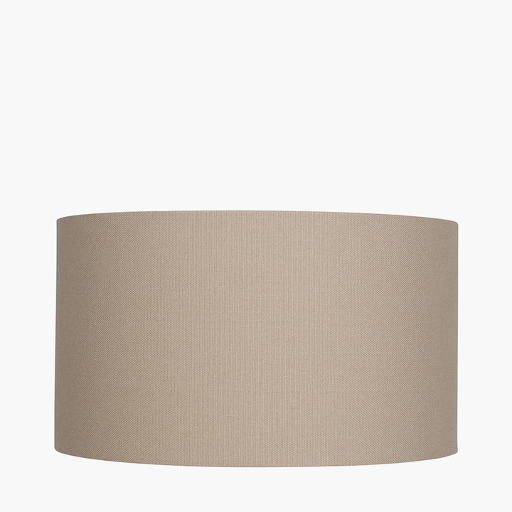 This 45cm cylinder shade is created in a linen mix neutral taupe fabric which allows the light to softly filter through the weave producing a soft glow when lit. Brochure Box Type: Shades CBM: 8.2000000000000003E-2 Country of origin: India Is the shade reducer / adaptor included?: Yes Mail order packaging: 3 Master code: 36-025-18TA Material 1: Cotton Material 2: n/a Material composition (%): Handloom cotton 70%, PVC 30% Max wattage: 10-12W LED Number of product boxes: 0 Outer box depth (front to back): Various sizes/colours Outer box height (top to bottom): Various sizes/colours Outer box quantity: Various sizes/colours Outer box weight: Various sizes/colours Outer box width (side to side): Various sizes/colours Packaging status: 3 Polybag warning label: Yes Product status: 3 Product weight: 0.55000000000000004 Shade lining colour and material: White, PVC Shade struts number and colour: 4 White Single product depth (front to back): 45 Single product height (top to bottom): 26 Single product width (side to side): 45 Spec sheet: Cylinder Shades User guide included: No Variant position: 1 Colour 1: Brown Colour 2: n/a