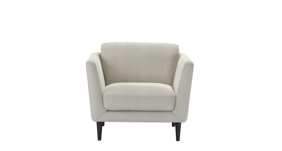 The Holly's retro-inspired shape and simple elegance is a nod to the sleek and curvy mid-century style. A neat frame - with high, splayed arms, a deep seat, and lots of comfy cushions - sits on tall tapered legs. This is one cool sofa... back cushions: feather color: natural covers: fixed seat cushions: feather wrapped foam size: Armchair