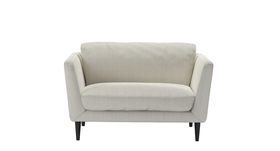 The Holly's retro-inspired shape and simple elegance is a nod to the sleek and curvy mid-century style. A neat frame - with high, splayed arms, a deep seat, and lots of comfy cushions - sits on tall tapered legs. This is one cool sofa... back cushions: feather color: natural covers: fixed seat cushions: feather wrapped foam size: Loveseat