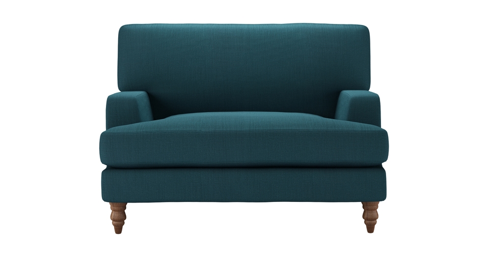 Our Isla mixes drawing room elegance with luxurious lounging. It sits on insanely smart turned wooden legs, and would grace any environment with refined style. Please note that when ordered in our leather fabrics, the covers are fixed and therefore cannot be removed like other textile upholstery options. However, the cushion covers are fully removable on all Isla sofas. back cushions: feather and quallofil fibre color: green covers: removable covers seat cushions: fibre wrapped foam size: Loveseat