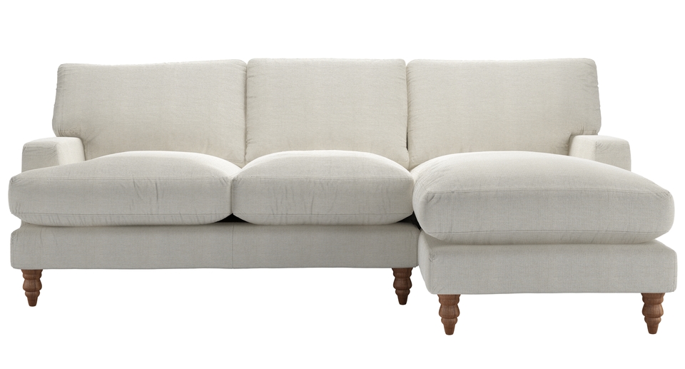Our Isla mixes drawing room elegance with luxurious lounging. It sits on insanely smart turned wooden legs, and would grace any environment with refined style. As beautiful as the Scottish island it's named after. back cushions: feather and quallofil fibre color: natural covers: loose seat cushions: quallofil fibre wrapped foam size: Right Hand Chaise