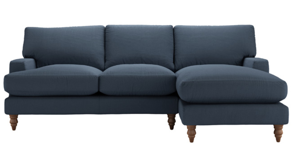 Isla Medium RHF Chaise Sofa in Midnight Blue Brushed Linen Cotton