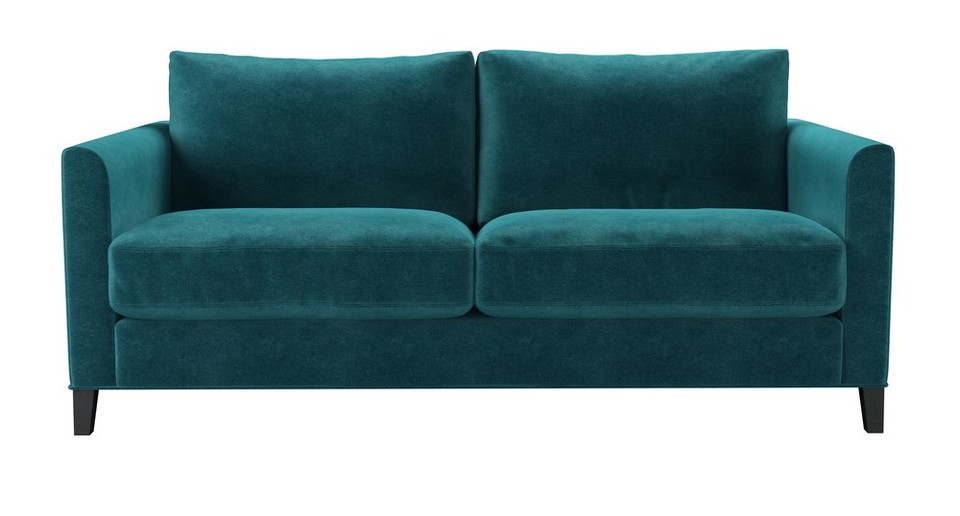 The Izzy's modest and contemporary style is perfect for practical and simple living. A straight-edged frame - with structured arms, plump cushioned seats and tall oak legs - make this one comfy sofa. The Izzy is also available in a modular form that enables you to create a sofa that is the perfect size and style for your home. back cushions: feather and fibre color: green,blue covers: fixed seat cushions: feather wrapped foam size: 2.5 Seat Sofa