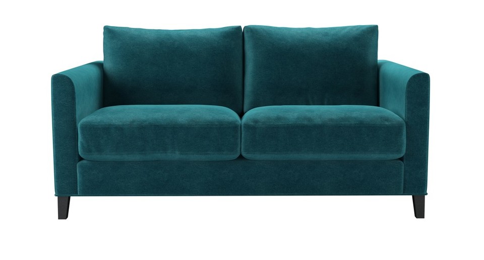 The Izzy's modest and contemporary style is perfect for practical and simple living. A straight-edged frame - with structured arms, plump cushioned seats and tall oak legs - make this one comfy sofa. The Izzy is also available in a modular form that enables you to create a sofa that is the perfect size and style for your home. back cushions: feather and fibre color: green,blue covers: fixed seat cushions: feather wrapped foam size: Two Seat Sofa