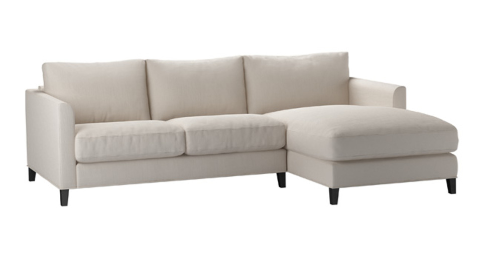 The Izzy's modest and contemporary style is perfect for practical and simple living. A straight-edged frame - with structured arms, plump cushioned seats and tall oak legs - make this one comfy sofa. The Izzy is also available in a modular form that enables you to create a sofa that is the perfect size and style for your home. back cushions: feather and fibre color: natural covers: fixed seat cushions: feather wrapped foam size: Small Right Hand Chaise