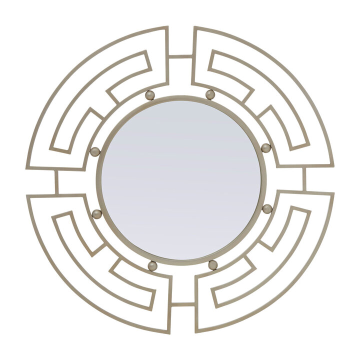 Small orbs separate the outer section from the inner mirror, all finished in a reflective silver colour that complements the mirrored surface. Evoking Aztec design, it styles well with exotic traveller/fusion furniture. materials: Metal, Glass composition:Metal, Glass Care & Use Instr: Wipe clean with a soft cloth. Do not use abrasive cleaners Dishwasher Safe: N Electric Hob Safe: N Freezer Safe: N Gas Hob Safe: N Halogen Hob Safe: N Induction Hob Safe: N Materials: Metal, Glass Microwave Safe: N Oven Safe: N Product Depth: 4 Product Height: 105 Product Weight (kg): 7.5 Product Width: 105 Item Assembled: Y