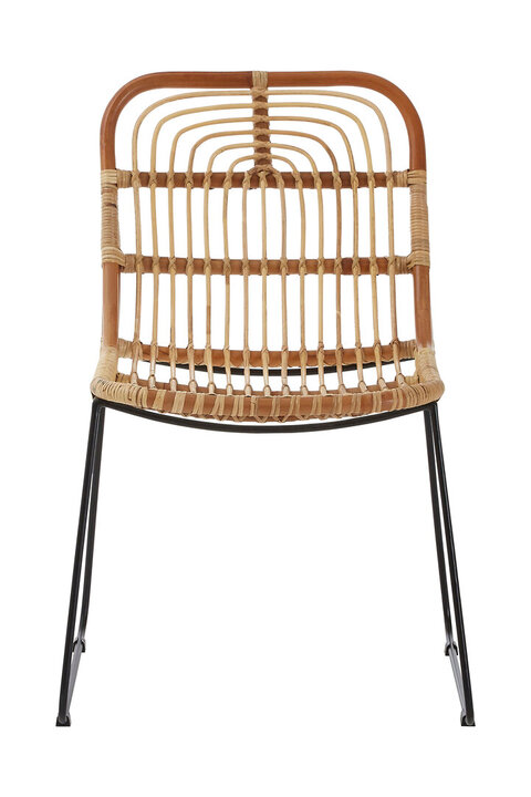 Light coloured strips of rattan are used to form the interior section of the seat, curving at the top of the backrest in alignment with the darker coloured rattan frame this chair will complement any living space in your home. materials: Metal, Wood composition:Wood, Textile, Synthetic Capacity: 100Kg Care & Use Instr: Wipe clean with a damp cloth Dishwasher Safe: N Electric Hob Safe: N Freezer Safe: N Gas Hob Safe: N Halogen Hob Safe: N Induction Hob Safe: N Materials: Metal, Wood Microwave Safe: N Oven Safe: N Product Depth: 61 Product Height: 85 Product Weight (kg): 3.8 Product Width: 59 Item Assembled: N