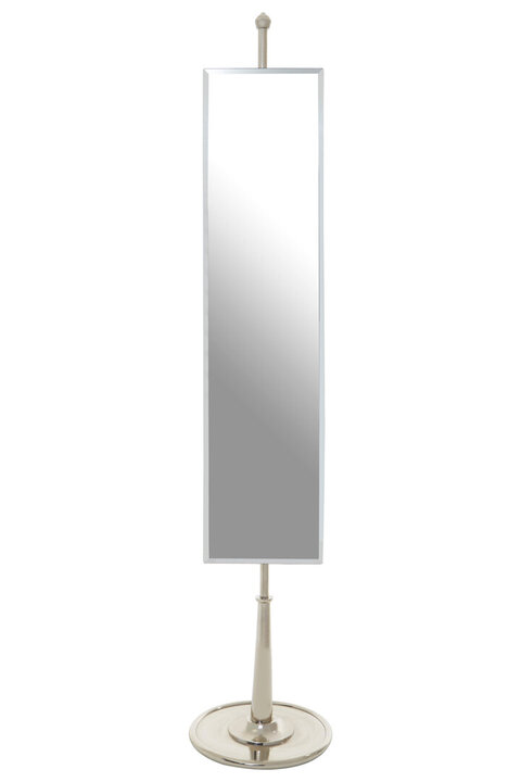 This mirror has bevelled edging and metal tips in a fine metallic silver finish. This vertical mirror is mounted on a decorative nickel coated stand with a round base, that allows adjusting it as needed. materials: Metal, Wood, Glass composition:100% Care & Use Instr: "To Clean Use Soft Cloth Only, Do Not Use Any Harsh Chemical Or Abrasive Cleaners As They May Cause Damage To The Finish." Dishwasher Safe: N Electric Hob Safe: N Freezer Safe: N Gas Hob Safe: N Halogen Hob Safe: N Induction Hob Safe: N Materials: Metal, Wood, Glass Microwave Safe: N Oven Safe: N Product Depth: 42 Product Height: 210 Product Weight (kg): 17.83 Product Width: 42 Item Assembled: N