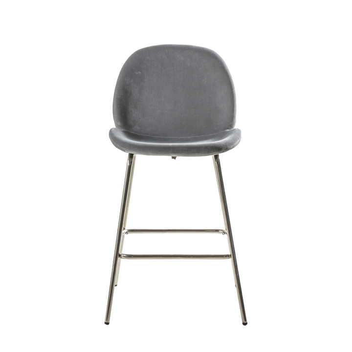 This stool offers simple, contemporary design, with its sleek seat and metal base. The subtle light grey velvet pairs perfectly with the silver finish of the base to give a chic sophisticated look. Available in two other colours, and there are also dining chairs in five colours. Pack Of: 2 Material: Steel / Plywood / Polyester Product Zone: Indoor Seat Height: 660mm Assembly Required: Yes