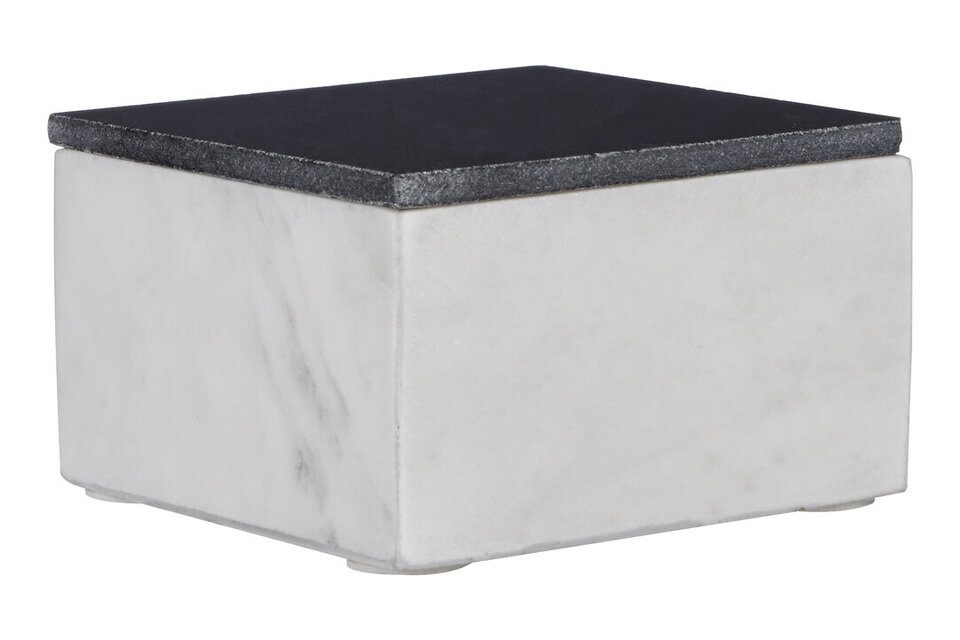 The Kira small trinket box features a contrasting effect formed from white and black marble, its subtly dappled surface lending it texture. Discreet surface protectors are attached to its base. Crafted by hand, each unit boasts its own unique variations. *This item is handcrafted so please expect slight variations to the finish* materials: Stone composition:Marble 100% colour: White, Grey Care & Use Instr: "Wipe With A Soft Cloth, Do Not Use Abrasive Cleaners" Dishwasher Safe: N Electric Hob Safe: N Freezer Safe: N Gas Hob Safe: N Halogen Hob Safe: N Induction Hob Safe: N Materials: Stone Microwave Safe: N Oven Safe: N Product Depth: 13 Product Height: 8 Product Weight (kg): 1.7 Product Width: 13 Item Assembled: Y Courier Service: Evri Packet