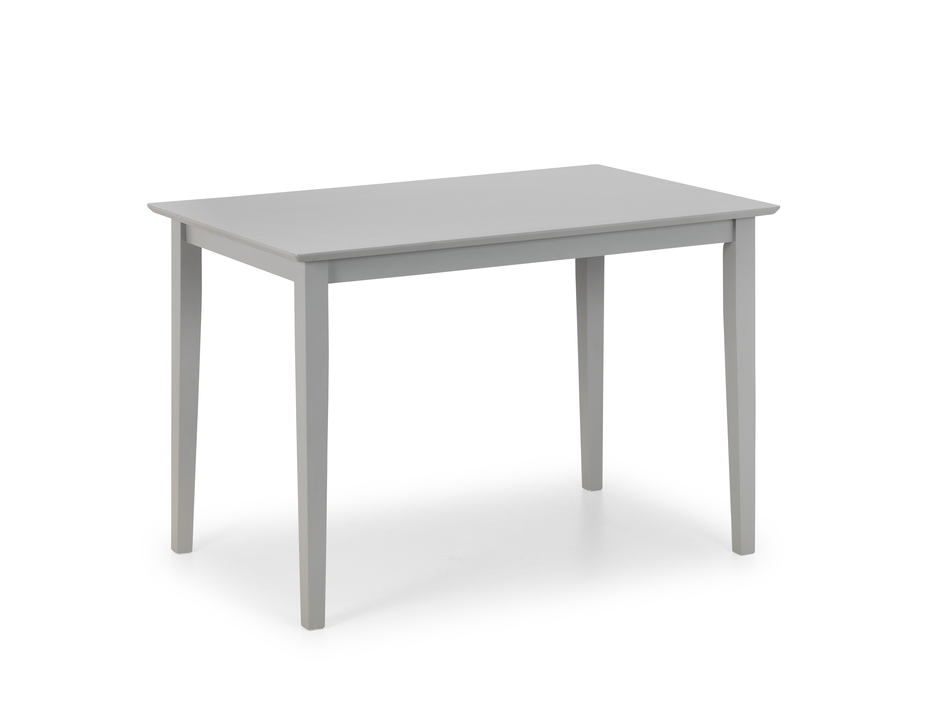 • Contemporary Design: The Kobe Dining Table features a sleek grey finish and minimalist design, perfect for modern dining spaces. Compact Size: Ideal for smaller dining areas, offering a stylish solution without taking up too much space. Sturdy Construction: Made from high-quality materials for durability and stability. Easy to Clean: The smooth surface is easy to maintain and keep looking new. Versatile Use: Suitable for both casual and formal dining settings.