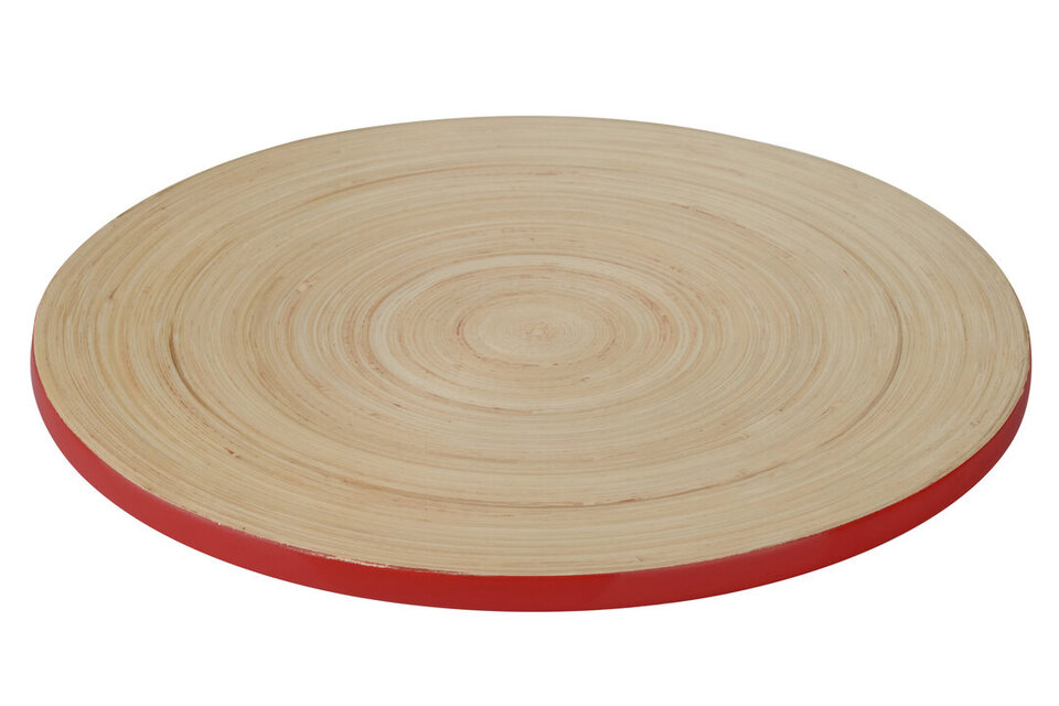 Made using spun bamboo, this placement is strong, durable and easy to clean with a damp cloth making it perfect for everyday use in a busy home. The spun design adds robustness making it suitable for serving hot and cold food. materials: Wood composition:Bamboo 100% colour: Natural, Red Care & Use Instr: Don't soak in water Dishwasher Safe: N Electric Hob Safe: N Freezer Safe: N Gas Hob Safe: N Halogen Hob Safe: N Induction Hob Safe: N Materials: Wood Microwave Safe: N Oven Safe: N Product Depth: 25 Product Height: 1 Product Weight (kg): 0.42 Product Width: 25 Item Assembled: Y Courier Service: Evri Packet