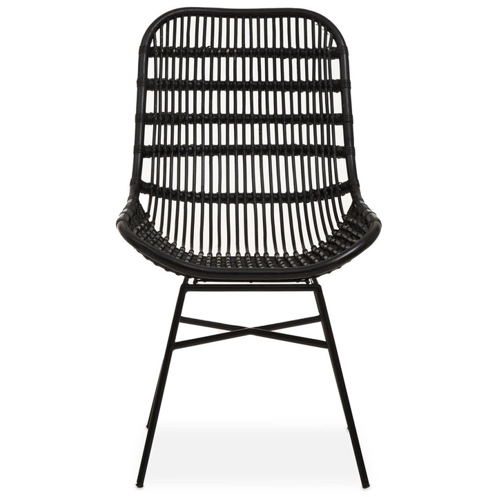 Embrace the hygge lifestyle, with the Lagom black rattan chair. Smooth black rattan provides ergonomic comfort and is supported by a black metal frame, creating a cohesive contemporary look. materials: Metal, Wood composition:100% Capacity: 100Kg Care & Use Instr: Wipe with dry and soft cloth Dishwasher Safe: N Electric Hob Safe: N Freezer Safe: N Gas Hob Safe: N Halogen Hob Safe: N Induction Hob Safe: N Materials: Metal, Wood Microwave Safe: N Oven Safe: N Product Depth: 61 Product Height: 98 Product Weight (kg): 3.8 Product Width: 56 Item Assembled: N Armrest Height: 56 Seated Areas Dimensions: 48x55 Floor to Seat Height: 47 Measurement between Chair Legs: 50