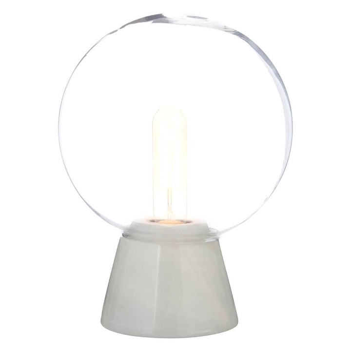 "The lamp?s marble base is completely solid, and provides ample support for the ethereal glass globe that sits safely on top of it, providing a contrast to the heavy, solid nature of the base. The clear glass globe looks great paired with a filament bulb." materials: Glass, Stone composition:Metal, Textile Bulb Included: N Bulb Info: 1 Qty E27 40W Max Care & Use Instr: Wipe clean with a soft cloth Dishwasher Safe: N Electric Hob Safe: N Freezer Safe: N Gas Hob Safe: N Halogen Hob Safe: N Induction Hob Safe: N Materials: Glass, Stone Microwave Safe: N Oven Safe: N Product Depth: 20 Product Height: 28 Product Weight (kg): 2.5 Product Width: 20 Item Assembled: Y