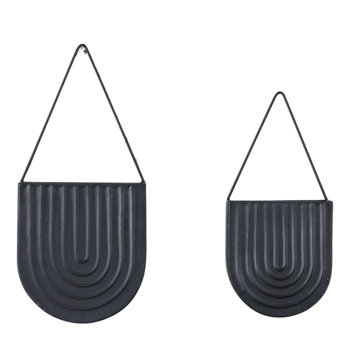 Set of two unusual metal wall planters with a textured matt black finish. Suitable for use both indoors and outdoors. Material: Iron Additional Information: 155x8x330mm