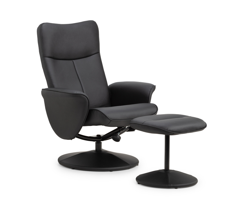 • High-Quality Materials: Upholstered in high-grade faux leather that is both durable and easy to clean. Supportive Padding: Thick padding provides excellent support for your back and legs. Smooth Recline Mechanism: Effortlessly adjust the recline angle with the smooth mechanism. Matching Stool: Comes with a matching stool for added comfort and relaxation. Elegant Finish: The black faux leather finish complements any decor.