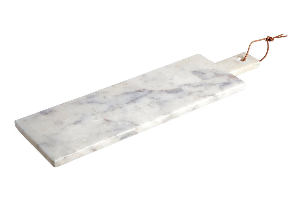 This rectangular paddle board is made from white marble which will add a natural touch to the kitchen or dining table. It features a simplistic handle which provides a firm grip while food cutting or serving. materials: Stone composition:Marble 100% colour: White Care & Use Instr: Wash Before First Use. Hand Wash Only. Do Not Use Abrasive Cleaners. Dishwasher Safe: N Electric Hob Safe: N Freezer Safe: N Gas Hob Safe: N Halogen Hob Safe: N Induction Hob Safe: N Materials: Stone Microwave Safe: N Oven Safe: N Product Depth: 15 Product Height: 2 Product Weight (kg): 3.37 Product Width: 55 Item Assembled: Y Courier Service: Evri Light & Large