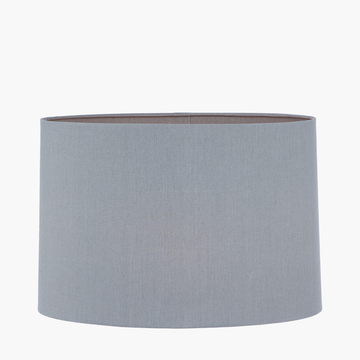 This elegant 25cm oval shade in a steel grey colour cotton mix material is lined to create a warm glow when lit. This shade is the perfect size for a lamp on a console table or smaller space. Brochure Box Type: Shades CBM: 2.4400000000000002E-2 Country of origin: China Is the shade reducer / adaptor included?: Yes Mail order packaging: 3 Master code: 36-049-10SG Material 1: Polycotton Material 2: PVC Material composition (%): Polycotton 70%, PVC 30% Max wattage: 10-12W LED Number of product boxes: 0 Outer box depth (front to back): Various sizes/colours Outer box height (top to bottom): Various sizes/colours Outer box quantity: Various sizes/colours Outer box weight: Various sizes/colours Outer box width (side to side): Various sizes/colours Packaging status: 3 Polybag warning label: No Product status: 3 Product weight: 0.19 Shade lining colour and material: Matching self-lining Shade struts number and colour: 4 Black Single product depth (front to back): 25 Single product height (top to bottom): 19 Single product width (side to side): 11 Spec sheet: Cylinder Shades User guide included: No Variant position: 1 Colour 1: Grey Colour 2: n/a