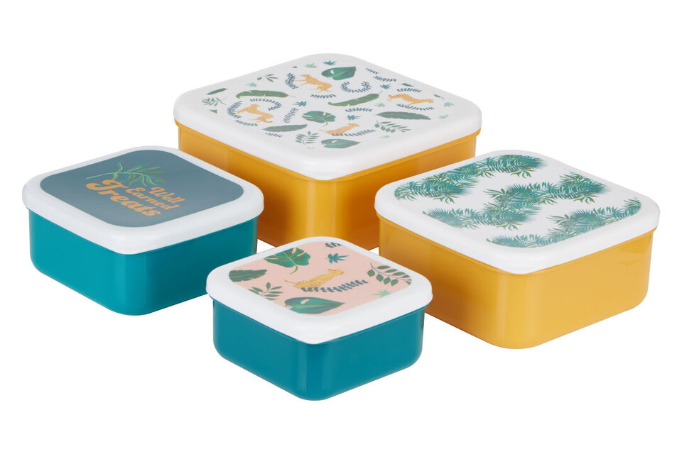 "These small, medium and large PP lunch boxes have a stackable design that saves space on the kitchen countertop. Each box has a vibrant base complete with winter palm themed airtight lids in distinctive patterns." materials: Synthetic composition:Polypropylene 100% colour: Assorted Care & Use Instr: Wash in warm soapy water. Heat resistant up to 60 Degrees. Dishwasher Safe: N Electric Hob Safe: N Freezer Safe: Y Gas Hob Safe: N Halogen Hob Safe: N Induction Hob Safe: N Materials: Synthetic Microwave Safe: Y Oven Safe: N Product Depth: 14 Product Height: 6 Product Weight (kg): 0.26 Product Width: 14 Item Assembled: Y Courier Service: Evri Packet