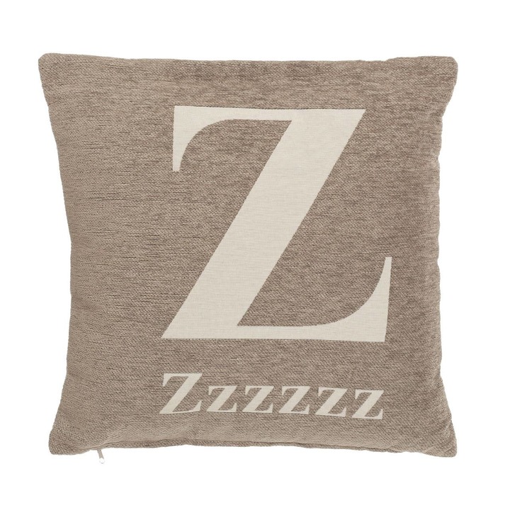 "The charming style of the 'zzzz' cushion will bring a caring touch and a wonderful decorative feature for your bed, chair or sofa. Made from 100% polyester, the natural cushion features a chenille jacquard finish and is soft to the touch for a comfortable feel. The cushion is filled with hollow fibre for good spring, while helping allergy sufferers. Accentuated against the natural colour, worded 'zzzzzz' and the letter 'Z' in off-white, gives the cushion a stylish look that will complement most settings."