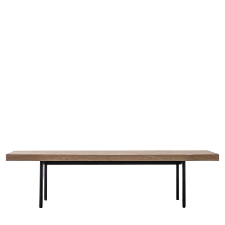 This unique collection offers a range of living, dining and bedroom furniture with a beautiful contemporary Japandi style. Crafted from solid oak and oak veneers, great attention to detail has been given to the design across the range to create these stunning pieces.\n\nThis coffee table features a stylish oak top, with a combination of slats and routing to create a stunning look. Slim black metal legs add the finishing touch. Material: Oak / Steel Clearance to Floor: 300mm Assembly Required: Yes - legs / feet only