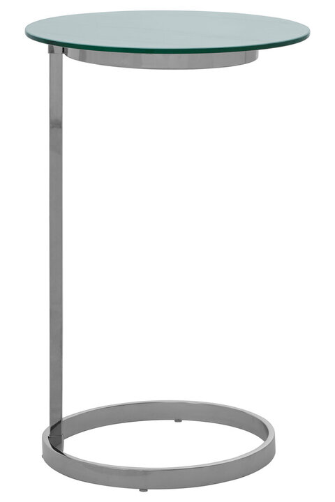 This end table has a rounded glass tabletop in white marble effect. The simple top is supported by the silver stainless steel frame featuring an open circular base which coordinates with the elegant top. materials: Metal, Glass composition:50% Mahogany, 50% Original Cow Skin, 50% Mahogany Capacity: 3Kg Care & Use Instr: Clean with soft dry fabric Dishwasher Safe: N Electric Hob Safe: N Freezer Safe: N Gas Hob Safe: N Halogen Hob Safe: N Induction Hob Safe: N Materials: Metal, Glass Microwave Safe: N Oven Safe: N Product Depth: 40 Product Height: 62 Product Weight (kg): 6 Product Width: 40 Item Assembled: N Product Load Bearing Weight: 3 Table Height: 62 Table Diameter: 40