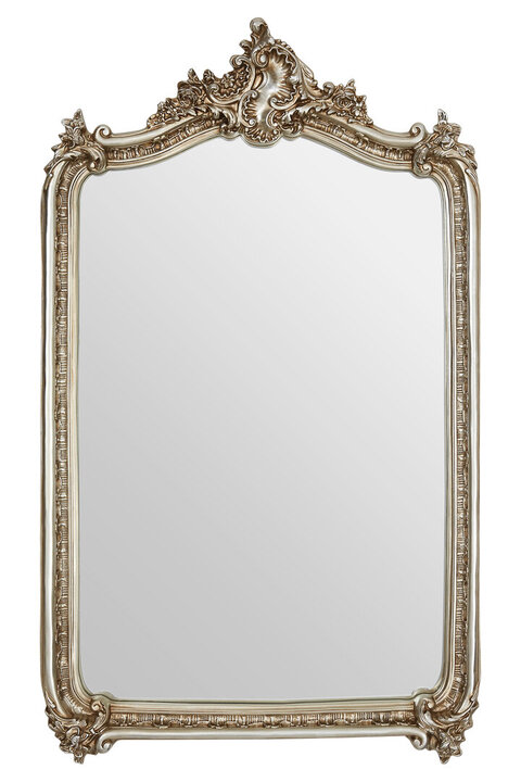 A selection of floral motifs garlands this neoclassical-style wall mirror, complemented by intricate etchings on the frame's inner section. Its rectangular shape is softened by the rounded bottom corners and curving top section. materials: Glass, Wood, Natural composition:MDF 0%,Mirrored Glass 0%,Resin 0% colour: Gold Care & Use Instr: Wipe clean with a soft cloth. Do not use abrasive cleaners Dishwasher Safe: N Electric Hob Safe: N Freezer Safe: N Gas Hob Safe: N Halogen Hob Safe: N Induction Hob Safe: N Materials: Glass, Wood, Natural Microwave Safe: N Oven Safe: N Product Depth: 13 Product Height: 150 Product Weight (kg): 18 Product Width: 89 Item Assembled: Y Courier Service: BSTAR 1MAN