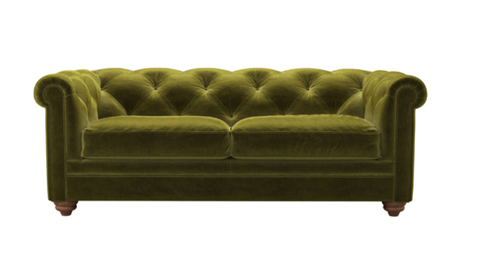 The Patrick is a fine fellow, exceptionally crafted to create the detailed, buttoned and pleated back that you see. Based on the classic Chesterfield design, ours offers superior comfort too! back cushions: see website color: green covers: see website seat cushions: see website size: 2.5 Seat Sofa