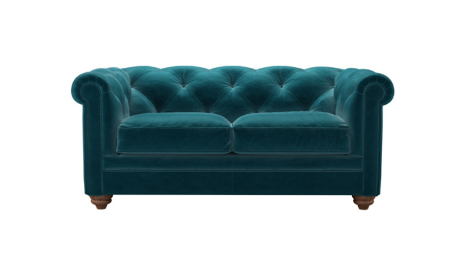 Patrick 2 Seat Sofa in Deep Turquoise Cotton Matt Velvet