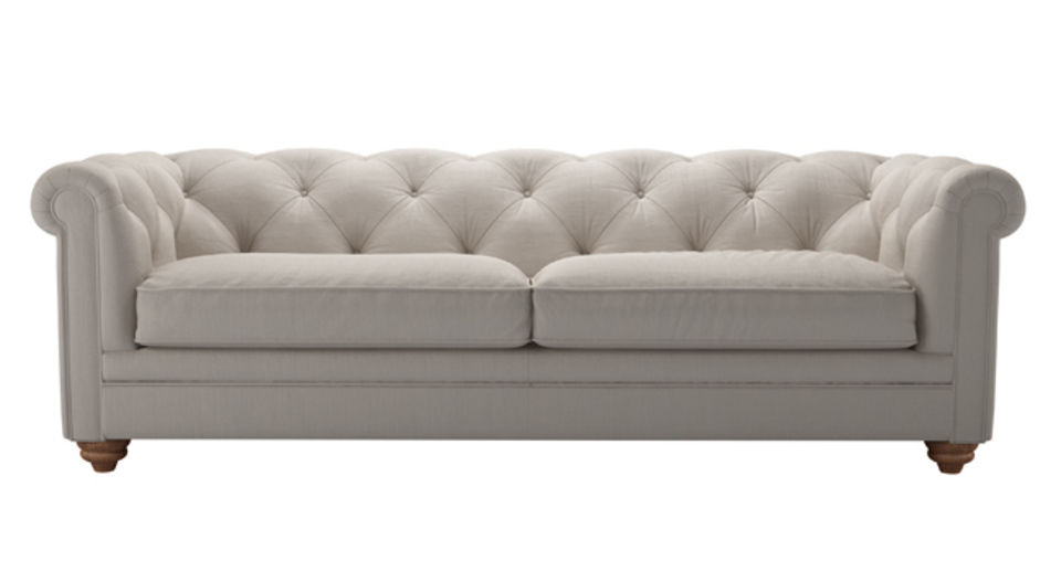 The Patrick is a fine fellow, exceptionally crafted to create the detailed, buttoned and pleated back that you see. Based on the classic Chesterfield design, ours offers superior comfort too! back cushions: see website color: grey,natural covers: see website seat cushions: see website size: Three Seat Sofa