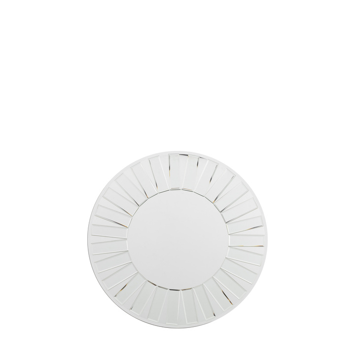 Stylish mosaic style mirror framed with intricate bevelled glass pieces. Material: Glass / MDF Type - Mirror: Wall Style - Mirror: Glass on Glass Shape - Mirror: Round Hanging Orientation: Portrait Glass Type: Bevelled Frame Width: 125mm Fixing Type: D-Ring