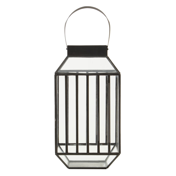 The Preston small lantern is characterised by a caged design shape and composed of transparent glass and antique black finish iron frame. The open-frame metal structure comes with a hoop handle to hang or hold the lantern swiftly. Colours: Black, Clear Material Compositions: Iron 20%,Glass 80% Materials: Metal/Glass Assembled Product Weight (kg): 2.35 Batteries Included: N Batteries Required: N Hob Safe - Ceramic (y/n): N Hob Safe - Electric (y/n): Y Hob Safe - Gas (y/n): Y Hob Safe - Halogen (y/n): Y Hob Safe - Induction (y/n): N Appliance Safety - Dishwasher (y/n): Y Appliance Safety - Freezer (y/n): Y Appliance Safety - Microwave (y/n): N Appliance Safety - Oven (y/n): N Item Assembled: Y Care & Use: "Clean with dry cotton cloth, indoor use"