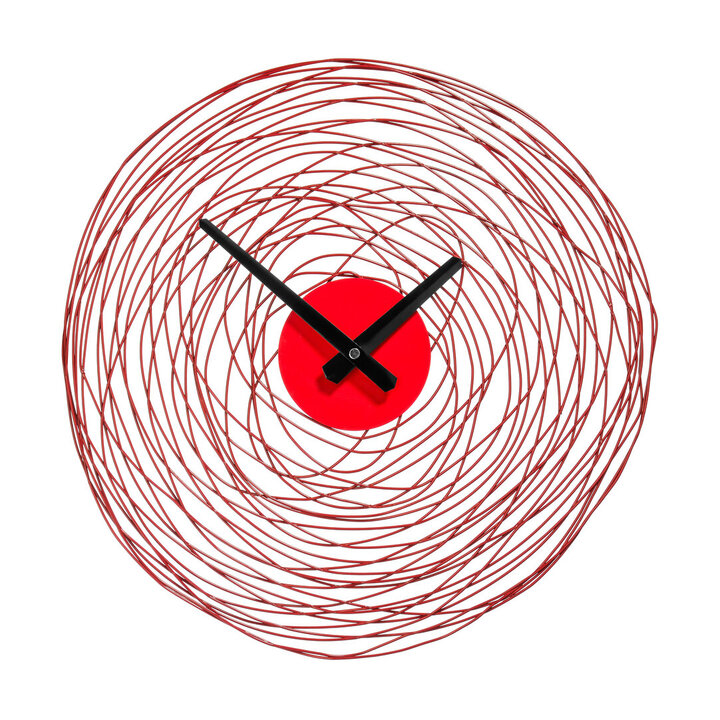 Black hands are accentuated against the red making it easy to read, even at a glance. A wonderful focal point in bedroom or living space, the swirl clock is decorative and practical. materials: Metal composition:40% Metal, 60% Plastic colour: Red Care & Use Instr: Wipe clean with a soft cloth Dishwasher Safe: N Electric Hob Safe: N Freezer Safe: N Gas Hob Safe: N Halogen Hob Safe: N Induction Hob Safe: N Materials: Metal Microwave Safe: N Oven Safe: N Product Depth: 5 Product Height: 38 Product Weight (kg): 0.4 Product Width: 38 Item Assembled: Y Courier Service: Evri Packet