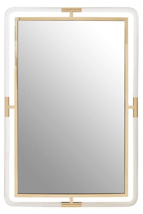 Slim lines of clear acrylic create a floating frame around the Remo wall mirror. They're held in place with stainless steel clasps, coloured reflective gold to match the mirror's stainless steel border. materials: Metal, Synthetic, Glass Capacity: 15Kg Care & Use Instr: "Wipe With A Soft Cloth, Do Not Use Abrasive Cleaners" Dishwasher Safe: N Electric Hob Safe: N Freezer Safe: N Gas Hob Safe: N Halogen Hob Safe: N Induction Hob Safe: N Materials: Metal, Synthetic, Glass Microwave Safe: N Oven Safe: N Product Depth: 3 Product Height: 80 Product Weight (kg): 17 Product Width: 120 Item Assembled: N
