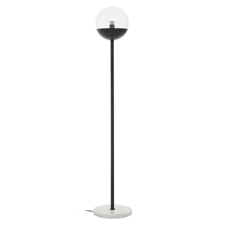 Featuring a clean line profile, a clear glass globe-shaped shade is balanced on a sleek metal stem in the black finish. Complemented with a sturdy white marble base in a round shape, this floor lamp will illuminate the living space evenly. materials: Glass composition:40% Iron, 40% Rattan, 15% Plastic, 5% Wire Bulb Included: N Bulb Info: 1 Qty E27 60W Care & Use Instr: Wipe clean with a soft cloth Dishwasher Safe: N Electric Hob Safe: N Freezer Safe: N Gas Hob Safe: N Halogen Hob Safe: N Induction Hob Safe: N Materials: Glass Microwave Safe: N Oven Safe: N Product Depth: 28 Product Height: 157 Product Weight (kg): 7 Product Width: 28 Item Assembled: N