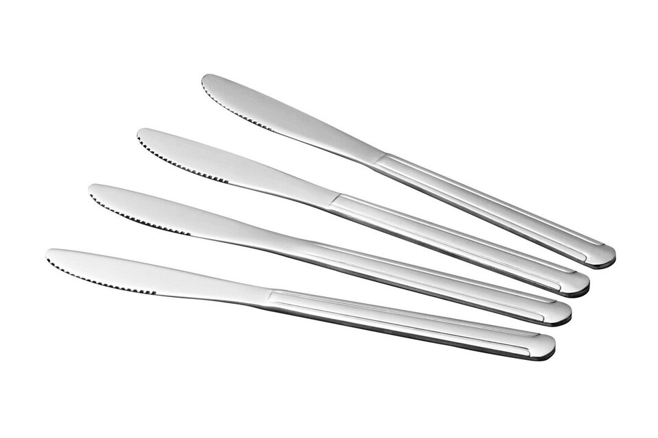 "This durable knife set has a series of lines on the handles, giving them a textured look. The stainless steel finish means that they won't rust. Dishwasher safe, this set of four rill knives will make a wonderful and practical addition to your dinnerware." materials: Metal composition:Stainless Steel 100% colour: Silver Bulb Included: N Care & Use Instr: Dishwasher Safe Dishwasher Safe: Y Electric Hob Safe: N Freezer Safe: N Gas Hob Safe: N Halogen Hob Safe: N Induction Hob Safe: N Materials: Metal Microwave Safe: N Oven Safe: N Product Depth: 1 Product Height: 20 Product Weight (kg): 0.17 Product Width: 2 Item Assembled: Y Courier Service: Evri Packet