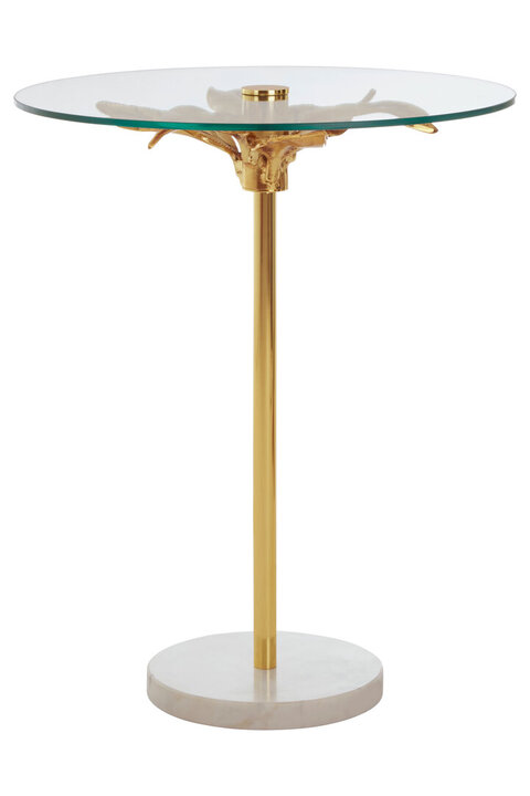 A clear glass top keeps the textured detailing of leaves visible accentuates its textured look. It coordinates to the white marble round bottom, the latter adding an element of natural tactility to the whole. materials: Glass, Metal composition:10% Resin, 50% MDF, 40% Glass Capacity: 5Kg Care & Use Instr: "Wipe With A Soft Cloth, Do Not Use Abrasive Cleaners" Dishwasher Safe: N Electric Hob Safe: N Freezer Safe: N Gas Hob Safe: N Halogen Hob Safe: N Induction Hob Safe: N Materials: Glass, Metal Microwave Safe: N Oven Safe: N Product Depth: 52 Product Height: 66 Product Weight (kg): 21 Product Width: 52 Item Assembled: N