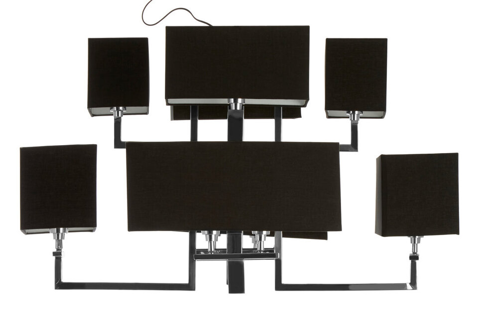Each light has an acrylic shade covered with black textured fabric contrasting the silver tones of the holding stand. Their square and rectangular shapes form a symmetric design aesthetic and the fabric helps them to cast an ambient glow. materials: Metal, Synthetic, Textile composition:60% Iron, 40% Glass Bulb Included: N Bulb Info: 1 Qty E27 60W Care & Use Instr: Wipe Clean With A Damp Cloth Dishwasher Safe: N Electric Hob Safe: N Freezer Safe: N Gas Hob Safe: N Halogen Hob Safe: N Induction Hob Safe: N Materials: Metal, Synthetic, Textile Microwave Safe: N Oven Safe: N Product Depth: 105 Product Height: 68 Product Weight (kg): 14.8 Product Width: 105 Item Assembled: N