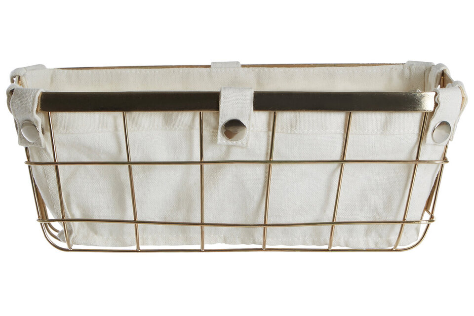 Crafted from iron, this small storage basket has a modern grid wireframe in a gold finish that lends it a touch of warmth and luxury. A basket cotton liner is securely clasped to the frame, making it ideal for storing and organising household items. materials: Textile/Metal composition:100% colour: Gold, Cream Capacity: 22Kg Care & Use Instr: Wipe with a damp cloth. Do not use abrasive cleaner Dishwasher Safe: N Electric Hob Safe: N Freezer Safe: N Gas Hob Safe: N Halogen Hob Safe: N Induction Hob Safe: N Materials: Textile/Metal Microwave Safe: N Oven Safe: N Product Depth: 17 Product Height: 11 Product Weight (kg): 0.36 Product Width: 28 Can Mirror be Hung Horizontally and Vertically?: N Item Assembled: Y Courier Service: Evri Packet