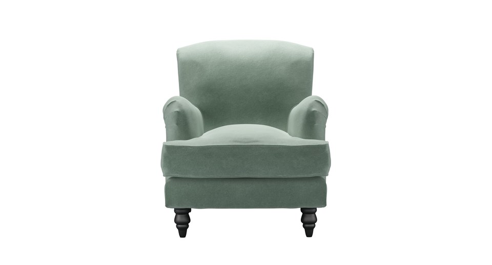 A blooming elegant sofa modelled on a classic English design. back cushions: see website color: green covers: see website seat cushions: see website size: Small Armchair