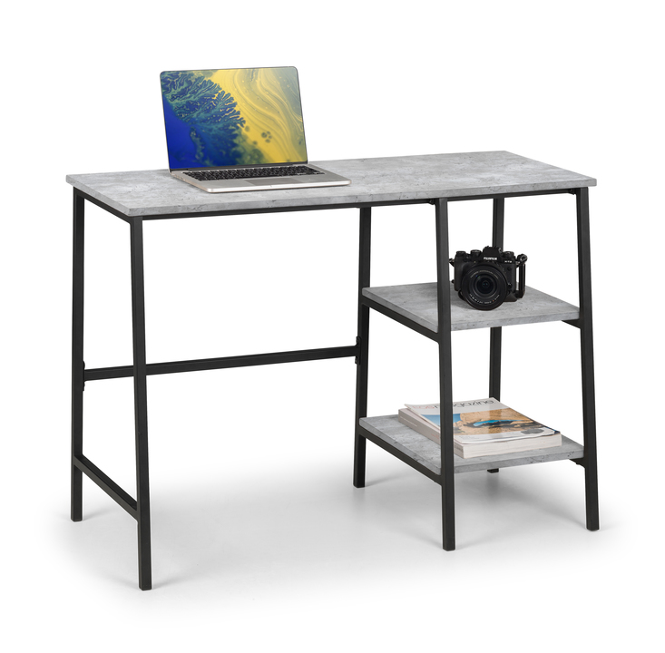 Materials: Metal & MDF {• |||product feature 1}• Black coated metal frame. • Modern design suitable for a range of décor. • H72 x W104 x D45cm, Weight 13.9kg • x1 Desk. Chair not included. • DIMENSIONS: Height 72 x Width 104 x Depth 45cm, Net Weight 13.9kg • WHAT'S INCLUDED: You will receive x1 Desk. Chair not included. Full Assembly Required. Level of Assembly Required: Full Assembly Required Build Time: 45.0 $ Total Net Weight: 13.9 Cleaning Instructions: Wipe Clean with Dry Cloth
